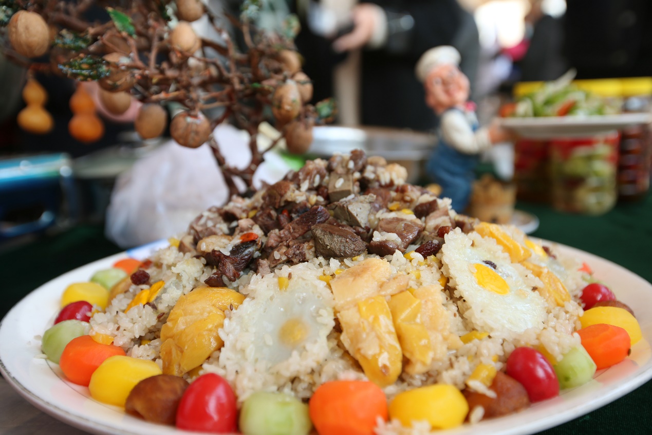 比賽現(xiàn)場(chǎng)熱鬧非凡,每家灶臺(tái)前圍滿了觀眾,身懷絕技的廚師們有條不紊忙碌著,淘米、剁肉、下鍋、翻炒、起鍋……