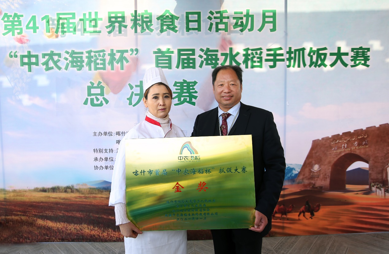 弘揚(yáng)新疆美食文化,助力鄉(xiāng)村振興,11月16日,“中農(nóng)海稻杯”首屆海水稻手抓飯決賽,在喀什帕哈太克里鄉(xiāng)稻香泉村成功舉辦。新疆喀什帕哈太克里鄉(xiāng)黨委書記李篤民、深圳援疆指揮部計(jì)劃財(cái)務(wù)處處長(zhǎng)馬力、喀什地區(qū)農(nóng)業(yè)農(nóng)村局種業(yè)發(fā)展中心副主任吐?tīng)柡榻?/span>·比克阿吉、喀什地區(qū)旅游飯店協(xié)會(huì)會(huì)長(zhǎng)李輝、喀什市文旅局喀什市文旅局產(chǎn)業(yè)中心副主任馬木提江·艾山、喀什市科學(xué)技術(shù)局辦公室主任古麗巴哈爾·阿布都熱合曼、喀什陽(yáng)光保險(xiǎn)集團(tuán)喀什分公司總經(jīng)理江顯英、新疆中農(nóng)海稻生物科技有限公司總經(jīng)理李強(qiáng)儒等人出席了本次活動(dòng)。