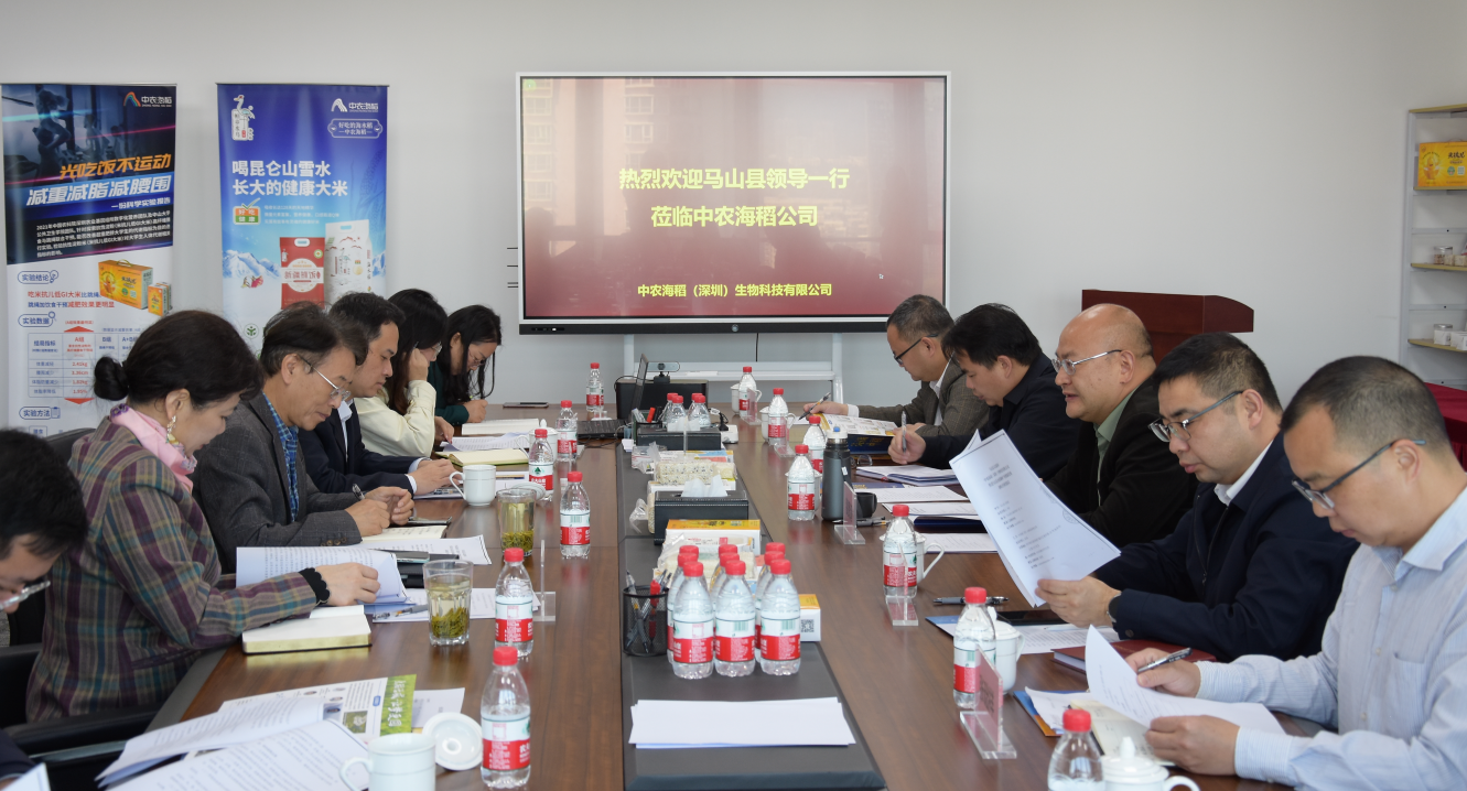 2023年2月28日廣西省南寧市馬山縣人民政府縣委書記穆賢清,副縣長(zhǎng)張春濤,縣委辦公室副主任、縣蘇博工業(yè)園區(qū)管委會(huì)副主任陸定軍,縣經(jīng)信局局長(zhǎng),投資促進(jìn)中心主任張礎(chǔ)祥,縣農(nóng)業(yè)農(nóng)村局局長(zhǎng)肖松,縣投促中心副主任陸鋒一行蒞臨中農(nóng)海稻公司調(diào)研座談。中農(nóng)海稻公司董事長(zhǎng)楊記磙、副總裁李莉、項(xiàng)目總監(jiān)劉春花出席座談。此外,中國(guó)農(nóng)業(yè)科學(xué)院深圳農(nóng)業(yè)基因組研究所產(chǎn)業(yè)發(fā)展處王紅梅、中農(nóng)振興產(chǎn)業(yè)研究(深圳)有限公司總經(jīng)理曾佳等人參加座談。